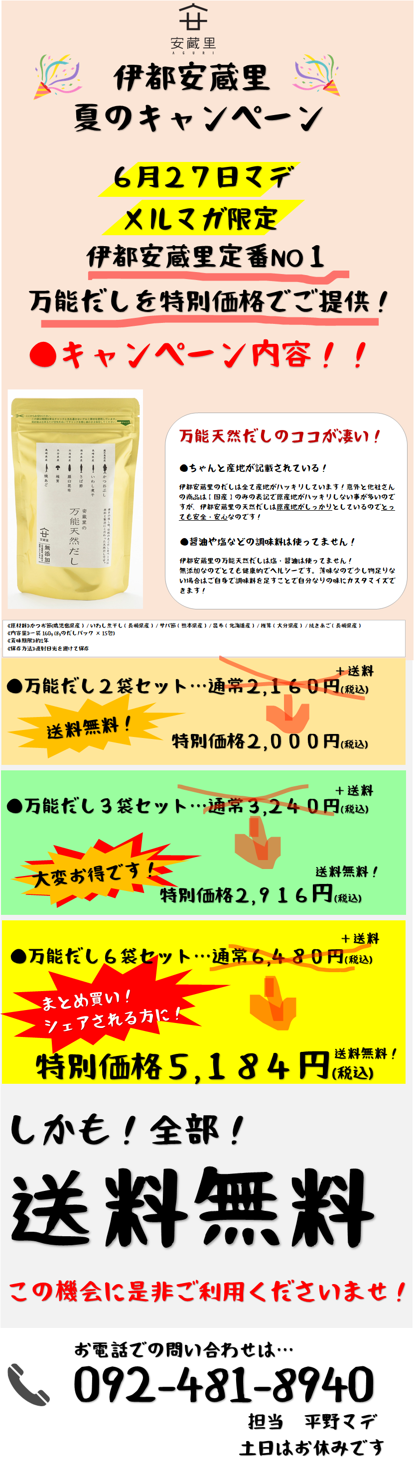 【6/27まで!】 万能天然だしキャンペーン!!
