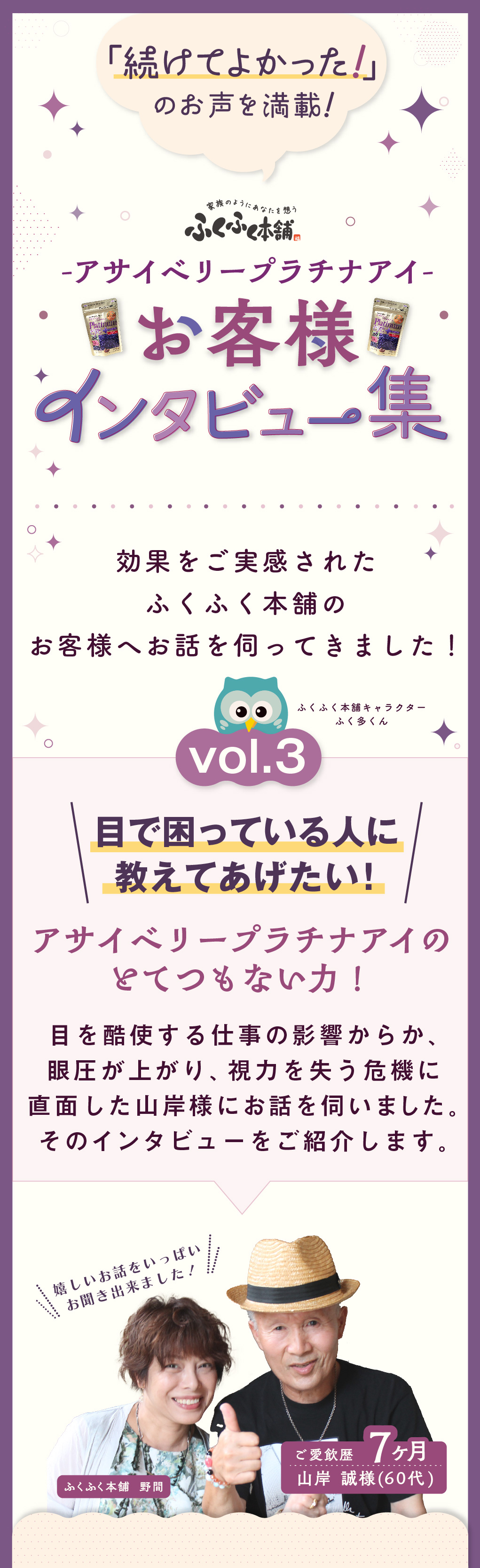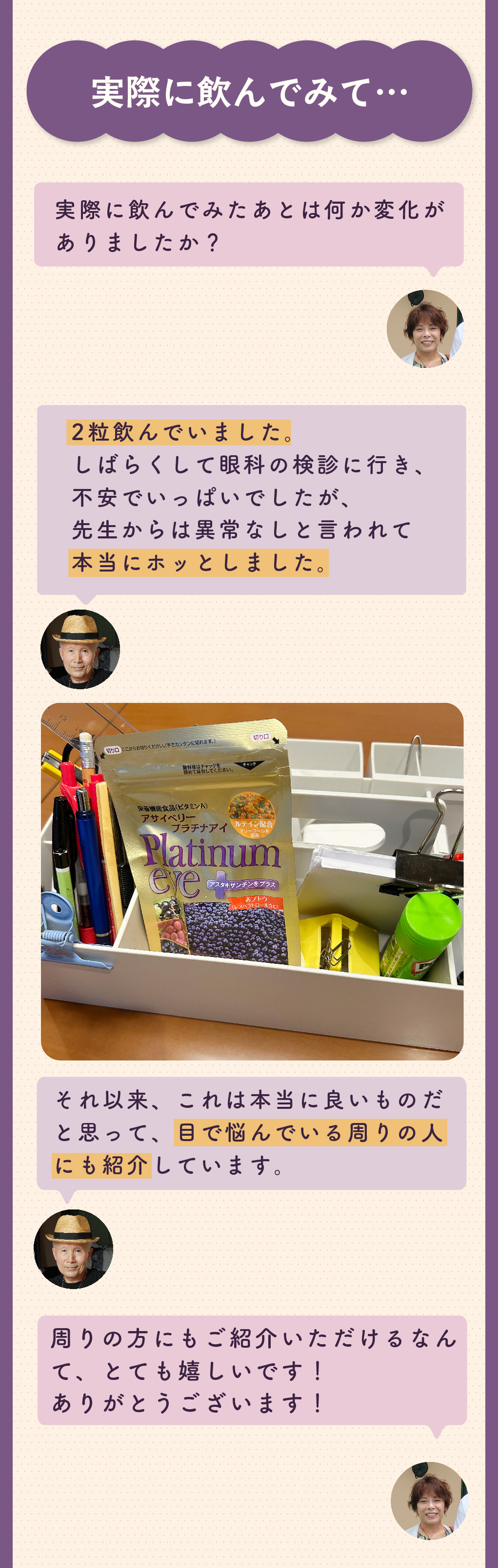 【ご愛飲者様の声・第3弾!】アサイベリープラチナアイを続けたお客様の効果と実感を大公開!