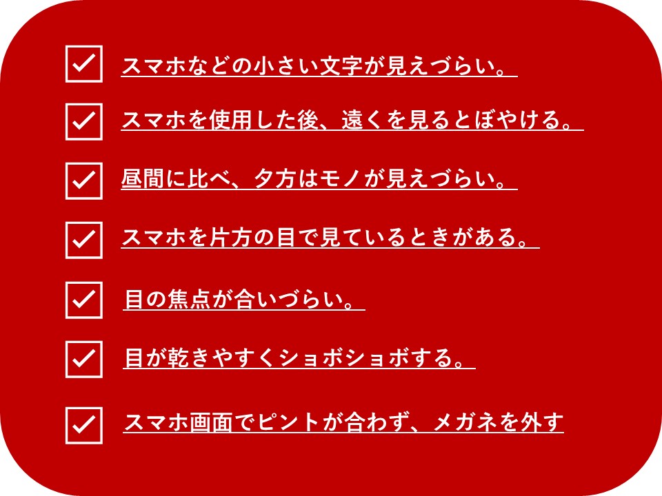 スマホ・パソコンの長時間利用で気になるこういった『スマホ老眼』。
