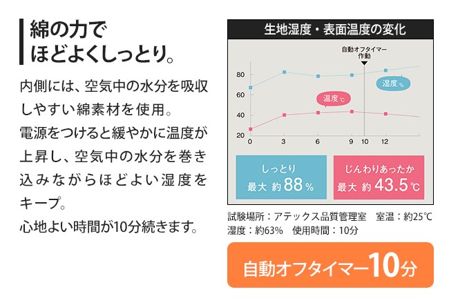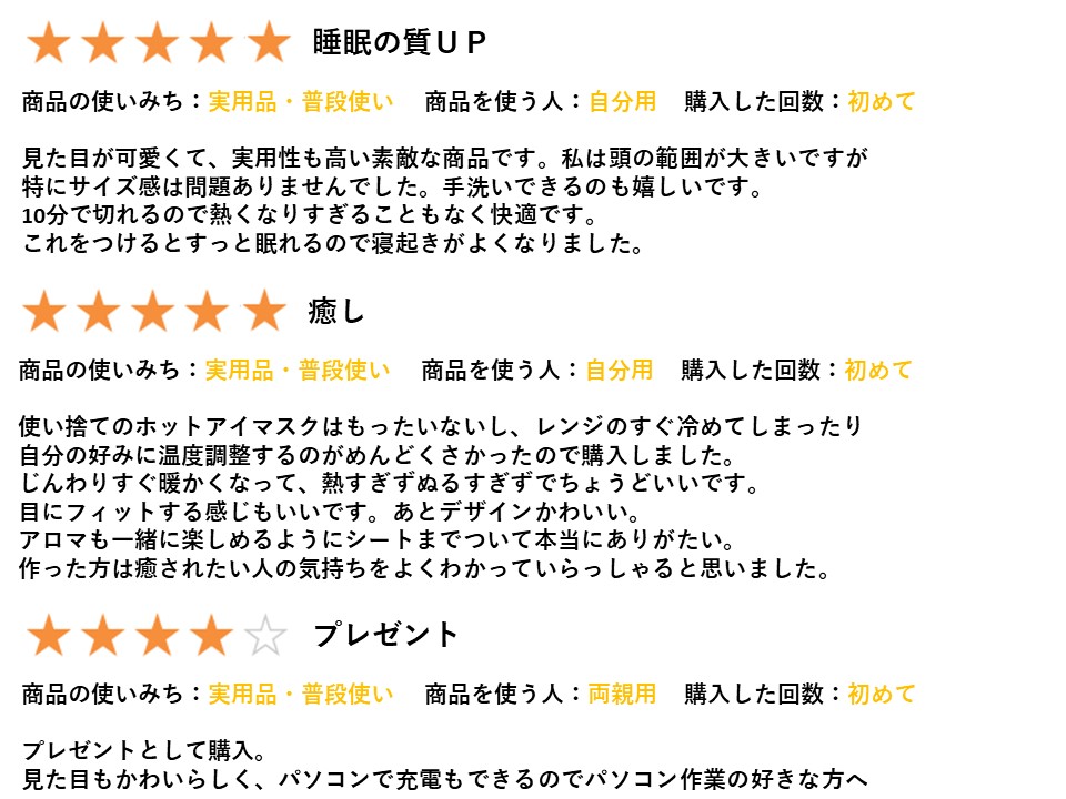 これまでの使い捨てタイプでは軽すぎて物足りなかった重さも程よく、じんわりとした温かさが約10分間も続きます。これならゆったりとリラックスして目もとケアができますね。