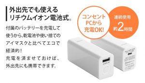 ~連続使用約2時間。外出先にも携帯できて便利♪